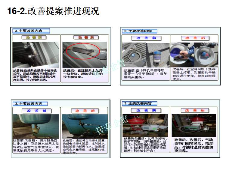 智泰咨詢(xún)下屬的TPM咨詢(xún)公司為企業(yè)推進(jìn)的TPM管理活動(dòng)中,為企業(yè)設(shè)備故障率下降推進(jìn)了大量的制度及標(biāo)準(zhǔn),通過(guò)全員消除設(shè)備的缺陷并改善及復(fù)原,并對(duì)設(shè)備進(jìn)行部分改良,促進(jìn)設(shè)備長(zhǎng)期穩(wěn)定運(yùn)