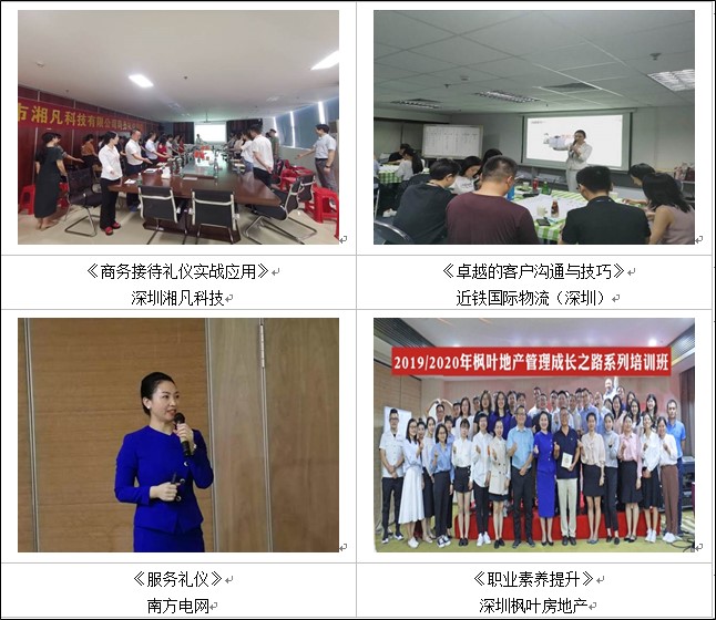 曾多次指導(dǎo)國(guó)際及國(guó)內(nèi)重要來(lái)訪的商務(wù)接待禮儀流程,及中國(guó)區(qū)中外籍員工的商務(wù)著裝、商務(wù)行為及商務(wù)溝通禮儀培訓(xùn),并固定每季度為員工進(jìn)行行為標(biāo)準(zhǔn)、著裝要求等培訓(xùn),幫助企業(yè)提高員工素質(zhì)、員工責(zé)任心和忠誠(chéng)度,營(yíng)造一個(gè)尊重企業(yè)、尊重他人、尊重自我的企業(yè)環(huán)境,獲得企業(yè)領(lǐng)導(dǎo)及員工高度認(rèn)可,榮獲“優(yōu)秀之星”獎(jiǎng)。