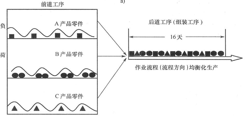 均衡化生產(chǎn)是實現(xiàn)精益生產(chǎn)即“適時、適量、適物”生產(chǎn)的必要條件,也是當(dāng)今制造型企業(yè)選擇的新型的生產(chǎn)運作模式,是適應(yīng)新的市場環(huán)境條件下的生產(chǎn)管理技術(shù),應(yīng)對多品種,少批