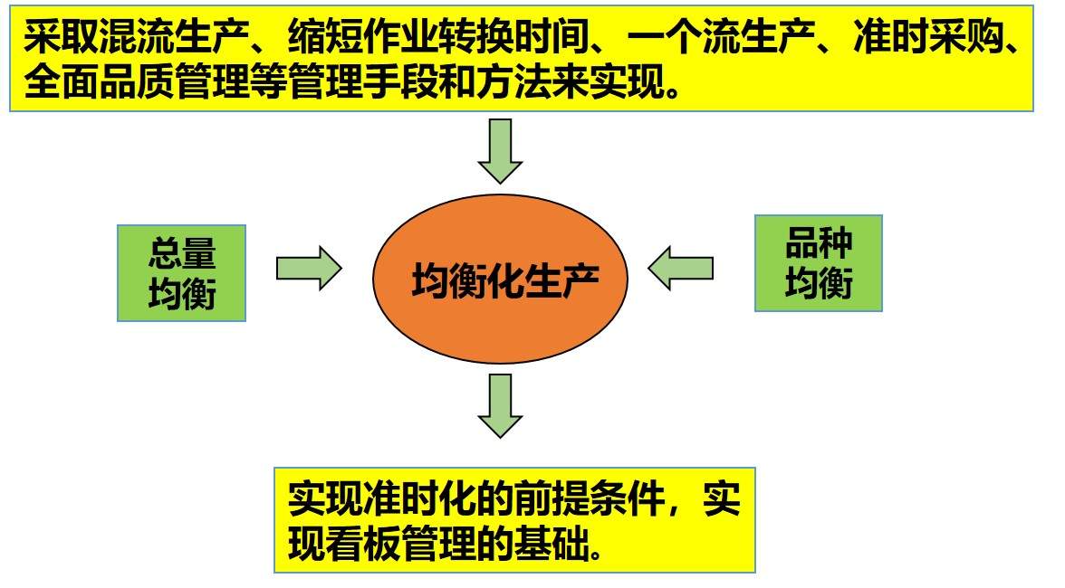 均衡化生產(chǎn)也稱平準(zhǔn)化生產(chǎn),各種產(chǎn)品的生產(chǎn)節(jié)拍與對應(yīng)產(chǎn)品的平均銷售節(jié)拍一致。