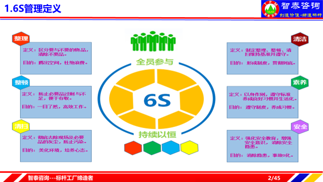 6S最早起源于日本,指的是在生產(chǎn)現(xiàn)場中對人員、機(jī)器、材料、方法、環(huán)境等生產(chǎn)要素進(jìn)行高效管理,形成一套企業(yè)現(xiàn)場管理的體系,促進(jìn)企業(yè)的發(fā)展。