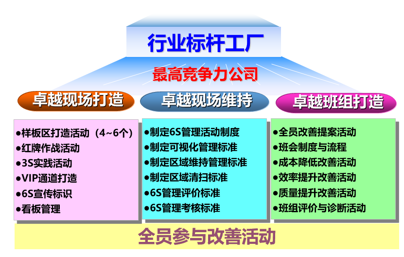 給企業(yè)培養(yǎng)一批熟練掌握6S管理、TPM管理、精益管理、QC七工具、8D改善法等等管理工具的優(yōu)秀人才---確保企業(yè)可持續(xù)高速發(fā)展;