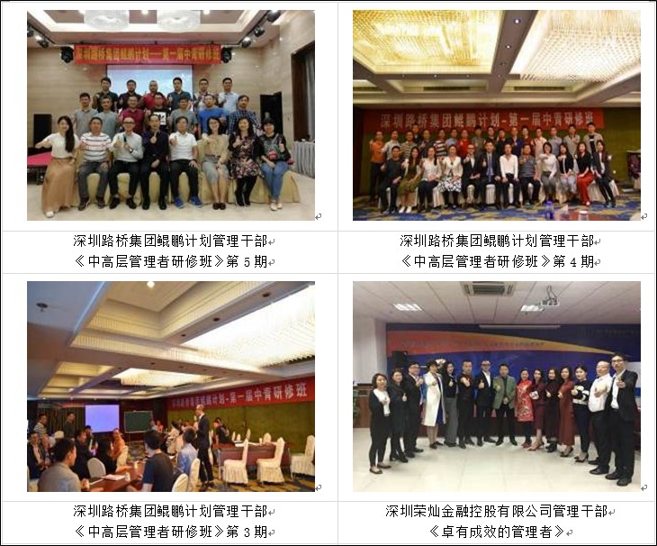 ■2018年成功為深圳路橋集團中高層管理做《路橋集團鯤鵬計劃中青研修班》6期,打造路橋集團堅實的中高層管理人員。