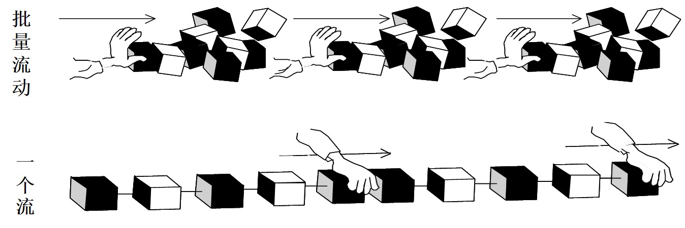 “一個流”生產(chǎn)的第一要點就是要使產(chǎn)品生產(chǎn)的各道工序做到幾乎同步進行,使產(chǎn)品實現(xiàn)單件生產(chǎn)、單件流動。單件流動是為了避免以批量單位進行加工,前道工序的加工一結(jié)束就立刻轉(zhuǎn)到下一道工序,從而使得工序間在制品的數(shù)量接近于零。