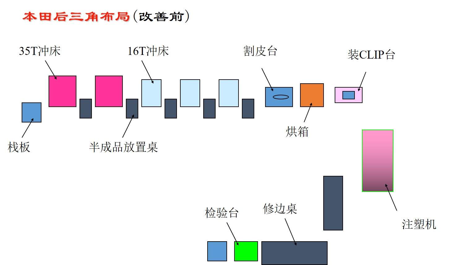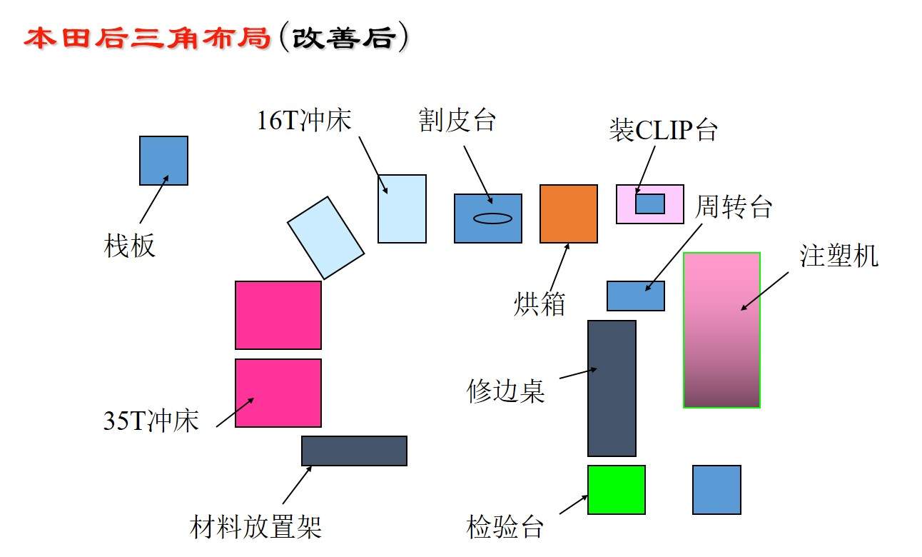 在一些工廠中經(jīng)??梢钥吹剑煌ば虻募庸ぴO(shè)備之間的距離非常遠,搬運到下一道工序,這樣的現(xiàn)象被稱為孤島設(shè)備。“一個流”生產(chǎn)要求放棄按設(shè)備類型排列的布局,而是按照加工順序來排列生產(chǎn)設(shè)備,避免孤島設(shè)備現(xiàn)象的出現(xiàn),盡可能使設(shè)備的布置流水線化,真正做到只有“一個流”。