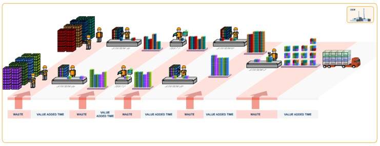 做一個、傳送一個、檢查一個,將制品經(jīng)過各加工工序而做成完成品。 單件流動是將浪費“顯現(xiàn)化”的思想與技術(shù),在原有狀況的基礎(chǔ)上以單件流動方式試做,將批量生產(chǎn)時發(fā)現(xiàn)的不了的浪費顯示出來,以此作為改善及建立流線化生產(chǎn)的起點。