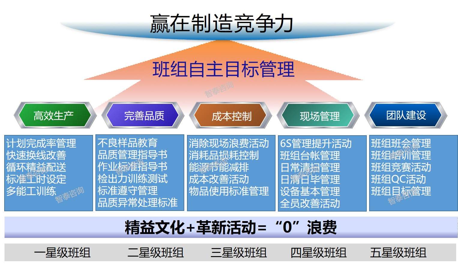 以班組自主管理為目標(biāo),為企業(yè)培養(yǎng)優(yōu)秀班組團隊。通過質(zhì)量、品質(zhì)、成本等先進管理方法,提升企業(yè)競爭力!