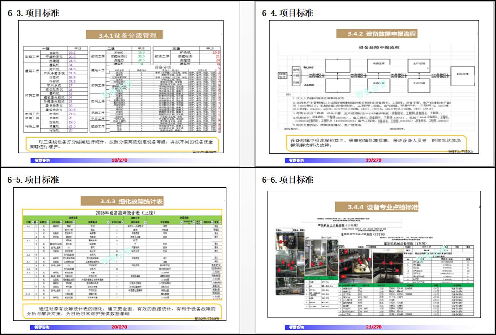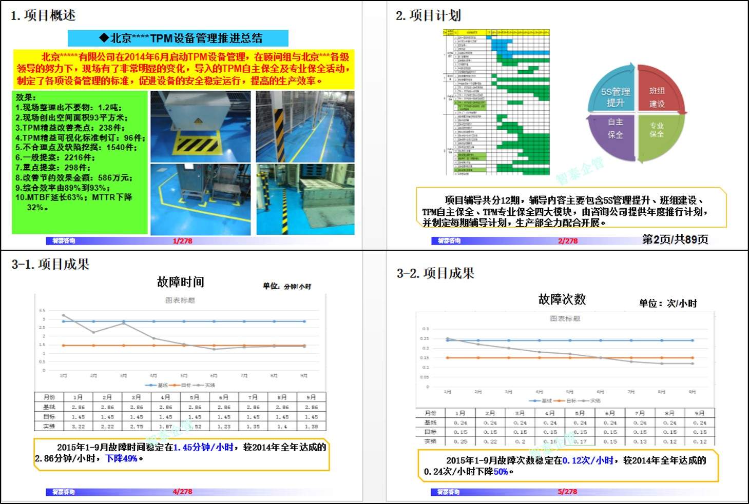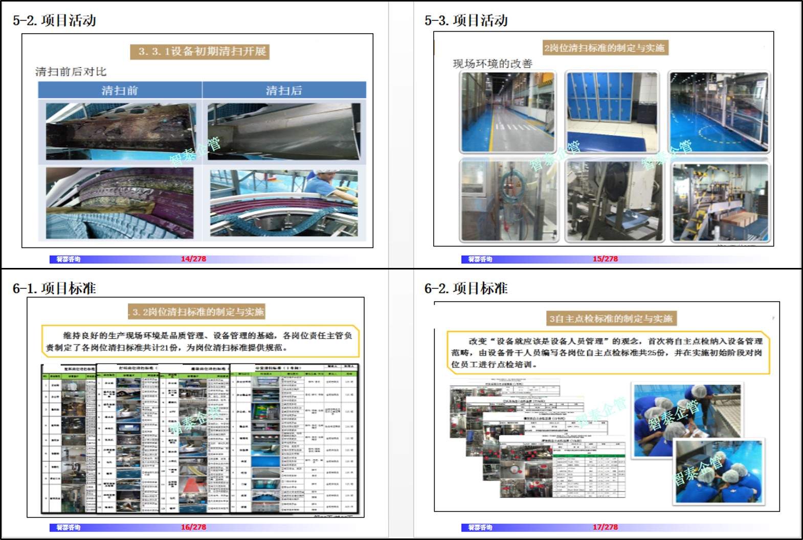 智泰咨詢(xún)下屬的TPM咨詢(xún)公司為企業(yè)推進(jìn)的TPM管理活動(dòng)中,為企業(yè)設(shè)備故障率下降推進(jìn)了大量的制度及標(biāo)準(zhǔn),通過(guò)全員消除設(shè)備的缺陷并改善及復(fù)原,并對(duì)設(shè)備進(jìn)行部分改良,促進(jìn)設(shè)備長(zhǎng)期穩(wěn)定運(yùn)