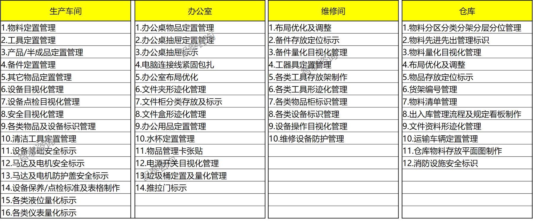 對各樣板區(qū)所有物品、設備、區(qū)域進行改善活動(參考改善清單)